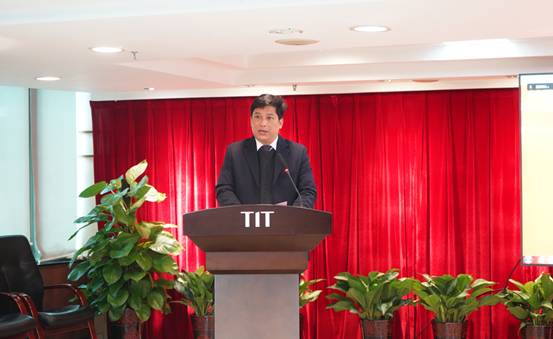 公司升國(guó)旗儀式現(xiàn)場(chǎng),全體員工起立奏唱國(guó)歌         簡(jiǎn)瑋儀致辭并作開(kāi)工動(dòng)員