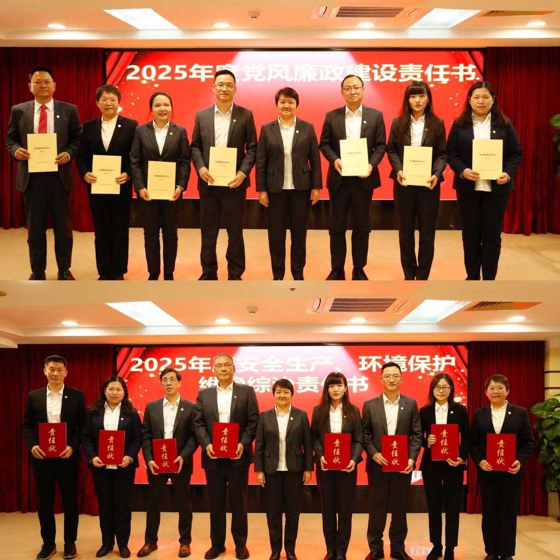 各屬下企業(yè)向紡織公司主要領導遞交2025年度黨風廉政建設、安全生產、環(huán)境保護、維穩(wěn)綜治等目標管理責任書。