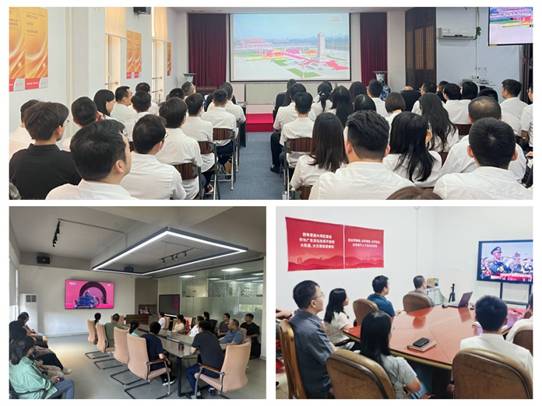 在重點(diǎn)項(xiàng)目現(xiàn)場(chǎng)、工廠園區(qū)組織觀看閱兵直播